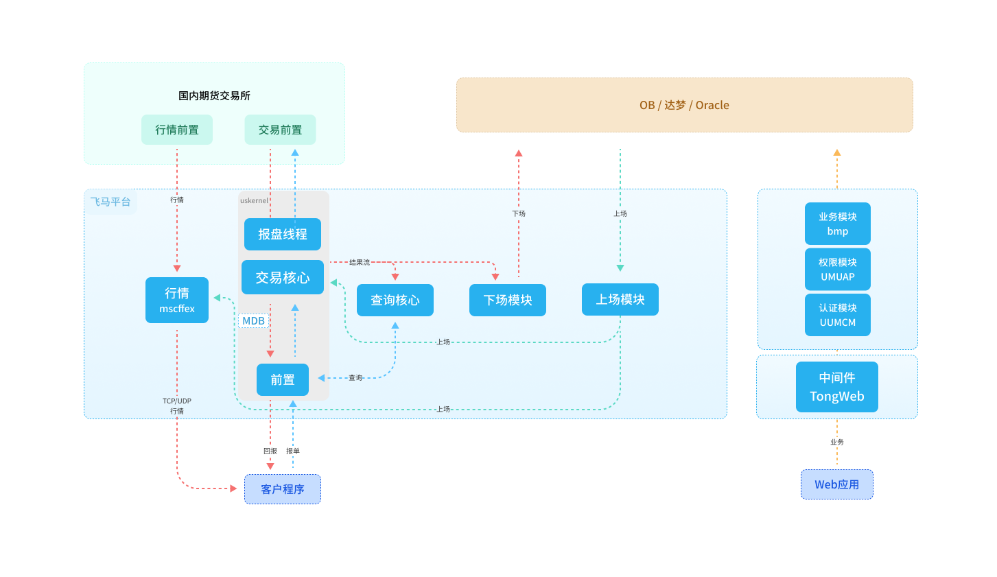 依托中金所自研技術(shù)及設(shè)施資源,飛馬期貨交易平臺已完成全環(huán)境的國產(chǎn)化,實現(xiàn)了核心交易系統(tǒng)的自主可控。操作系統(tǒng)上,兼容海光X86、麒麟V10系統(tǒng);數(shù)據(jù)庫上,兼容達夢、oceanbase等國產(chǎn)數(shù)據(jù)庫,并兼容oracle、mysql兩種數(shù)據(jù)庫語法;同時,系統(tǒng)兼容東方通、Tendis等國產(chǎn)商業(yè)及開源中間件。用戶可通過國產(chǎn)化PC終端及瀏覽器訪問。